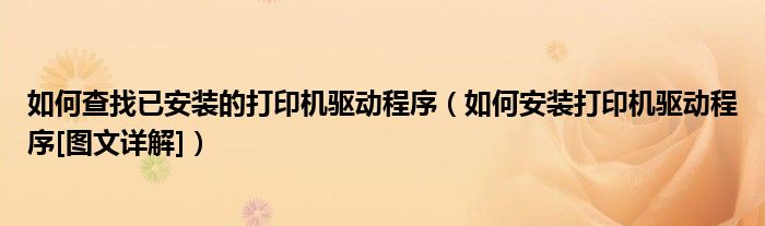 大家好,今天小悦来为大家解答以上问题。如何查找已安装的打印机驱动程序,如何安装打印机驱动程序[图文详解]很多人还不知道,现在让我们一起来看看吧!