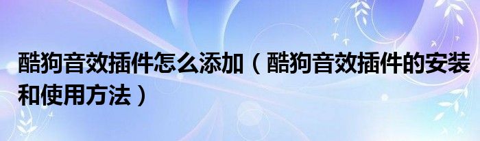 大家好,今天小悦来为大家解答以上问题。酷狗音效插件怎么添加,酷狗音效插件的安装和使用方法很多人还不知道,现在让我们一起来看看吧!
