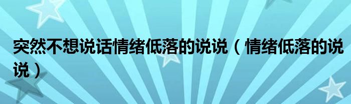 大家好,小晋来为大家解答以下问题,关于突然不想说话情绪低落的说说,情绪低落的说说很多人还不知道,今天让我们一起来看看吧!