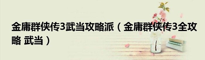 关于金庸群侠传3武当攻略派,金庸群侠传3全攻略 武当这个很多人还不知道,今天菲菲来为大家解答以上的问题,现在让我们一起来看看吧!