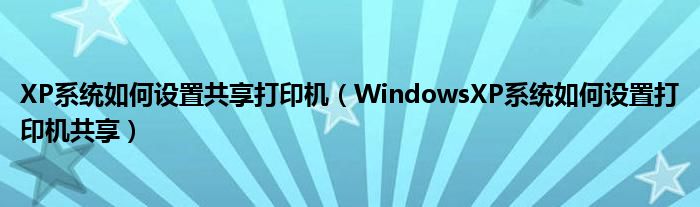 大家好,今天小悦来为大家解答以上问题。XP系统如何设置共享打印机,WindowsXP系统如何设置打印机共享很多人还不知道,现在让我们一起来看看吧!