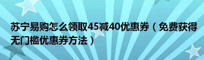 大家好,今天小悦来为大家解答以上问题。苏宁易购怎么领取45减40优惠券,免费获得无门槛优惠券方法很多人还不知道,现在让我们一起来看看吧!