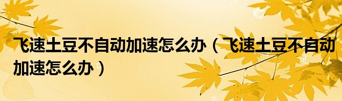 大家好,今天小悦来为大家解答以上问题。飞速土豆不自动加速怎么办,飞速土豆不自动加速怎么办很多人还不知道,现在让我们一起来看看吧!