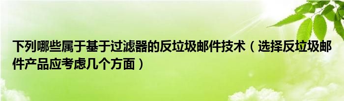 大家好,今天小悦来为大家解答以上问题。下列哪些属于基于过滤器的反垃圾邮件技术,选择反垃圾邮件产品应考虑几个方面很多人还不知道,现在让我们一起来看看吧!