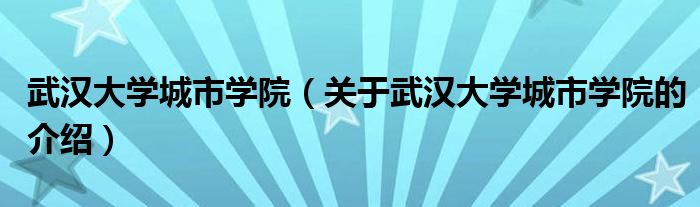 大家好,今天小乐来为大家解答以上的问题。武汉大学城市学院,关于武汉大学城市学院的介绍很多人还不知道,现在让我们一起来看看吧!
