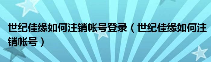 世纪佳缘如何注销帐号登录(世纪佳缘如何注销帐号)