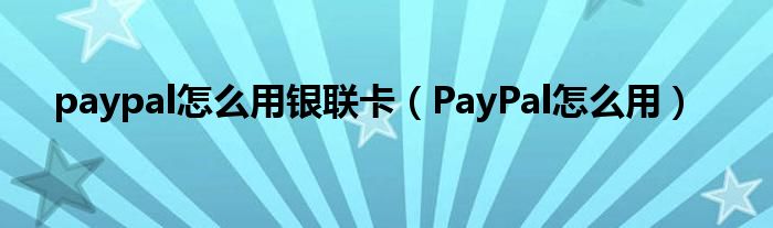 大家好,今天小悦来为大家解答以上问题。paypal怎么用银联卡,PayPal怎么用很多人还不知道,现在让我们一起来看看吧!