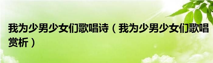 关于我为少男少女们歌唱诗,我为少男少女们歌唱赏析这个很多人还不知道,今天菲菲来为大家解答以上的问题,现在让我们一起来看看吧!