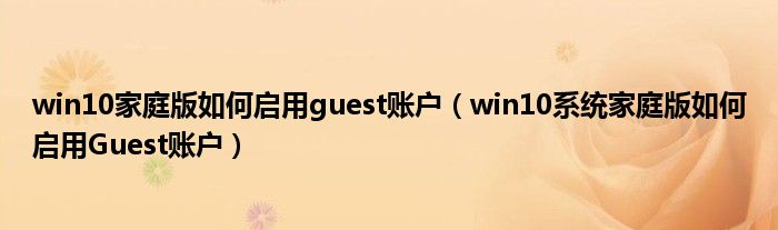 大家好,今天小悦来为大家解答以上问题。win10家庭版如何启用guest账户,win10系统家庭版如何启用Guest账户很多人还不知道,现在让我们一起来看看吧!
