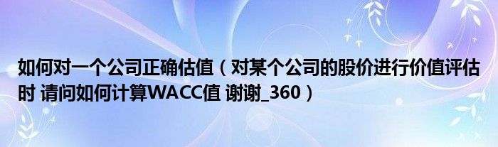 关于如何对一个公司正确估值,对某个公司的股价进行价值评估时 请问如何计算WACC值 谢谢_360这个很多人还不知道,今天菲菲来为大家解答以上的问题,现在让我们一起来看看吧!
