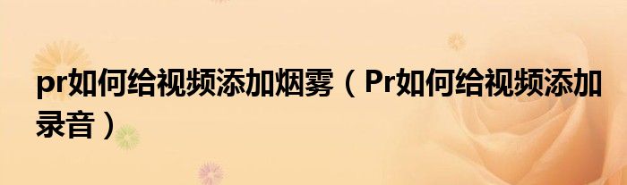 大家好,今天小悦来为大家解答以上问题。pr如何给视频添加烟雾,Pr如何给视频添加录音很多人还不知道,现在让我们一起来看看吧!