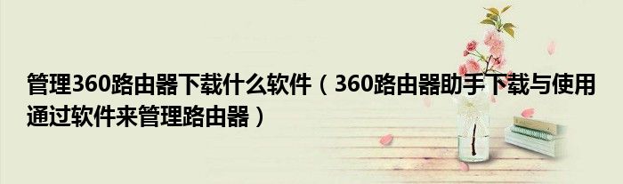 大家好,今天小悦来为大家解答以上问题。管理360路由器下载什么软件,360路由器助手下载与使用通过软件来管理路由器很多人还不知道,现在让我们一起来看看吧!