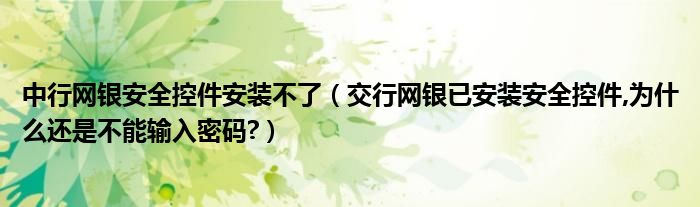 中行网银安全控件安装不了(交行网银已安装安全控件,为什么还是不能输入密码?)