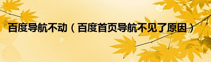 大家好,今天小悦来为大家解答以上问题。百度导航不动,百度首页导航不见了原因很多人还不知道,现在让我们一起来看看吧!