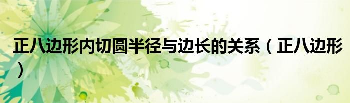 关于正八边形内切圆半径与边长的关系,正八边形这个很多人还不知道,今天菲菲来为大家解答以上的问题,现在让我们一起来看看吧!