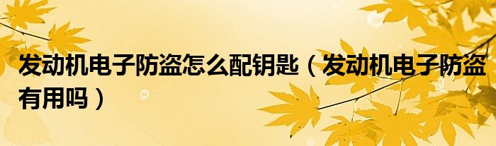 大家好,雨雨来为大家解答以上问题,发动机电子防盗怎么配钥匙,发动机电子防盗有用吗很多人还不知道,现在让我们一起来看看吧!