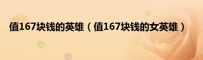 大家好,雨雨来为大家解答以上问题,值167块钱的英雄,值167块钱的女英雄很多人还不知道,现在让我们一起来看看吧!