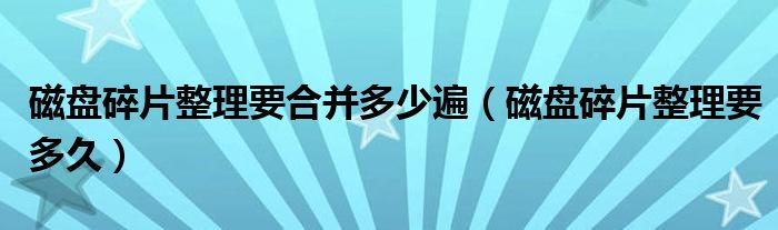 大家好,雨雨来为大家解答以上问题,磁盘碎片整理要合并多少遍,磁盘碎片整理要多久很多人还不知道,现在让我们一起来看看吧!