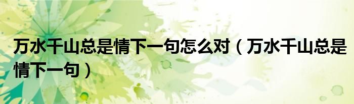关于万水千山总是情下一句怎么对,万水千山总是情下一句这个很多人还不知道,今天菲菲来为大家解答以上的问题,现在让我们一起来看看吧!