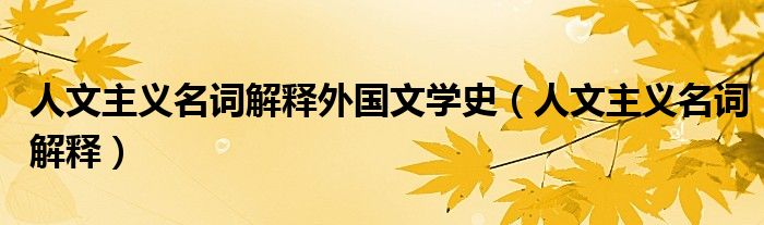 关于人文主义名词解释外国文学史,人文主义名词解释这个很多人还不知道,今天菲菲来为大家解答以上的问题,现在让我们一起来看看吧!