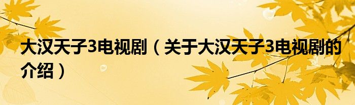 大汉天子3电视剧(关于大汉天子3电视剧的介绍)
