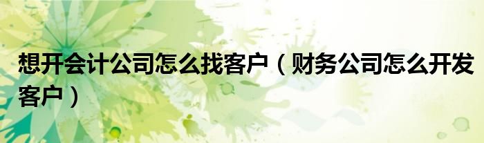 关于想开会计公司怎么找客户,财务公司怎么开发客户这个很多人还不知道,今天菲菲来为大家解答以上的问题,现在让我们一起来看看吧!