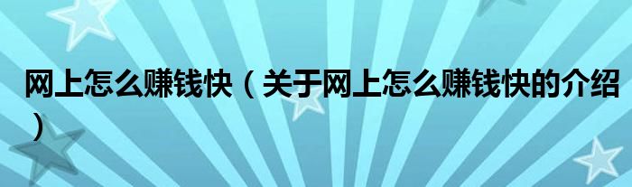 网上怎么赚钱快(关于网上怎么赚钱快的介绍)