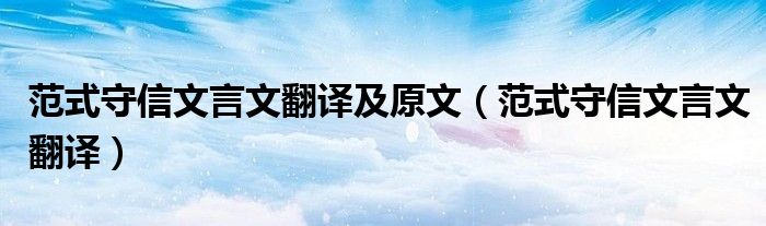 关于范式守信文言文翻译及原文,范式守信文言文翻译这个很多人还不知道,今天菲菲来为大家解答以上的问题,现在让我们一起来看看吧!