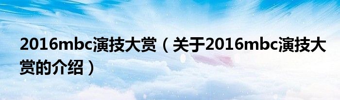 2016mbc演技大赏(关于2016mbc演技大赏的介绍)