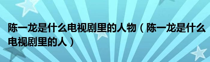 关于陈一龙是什么电视剧里的人物,陈一龙是什么电视剧里的人这个很多人还不知道,今天菲菲来为大家解答以上的问题,现在让我们一起来看看吧!