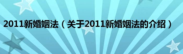 大家好,今天小乐来为大家解答以上的问题。2011新婚姻法,关于2011新婚姻法的介绍很多人还不知道,现在让我们一起来看看吧!