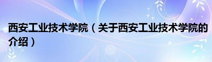 大家好,今天小乐来为大家解答以上的问题。西安工业技术学院,关于西安工业技术学院的介绍很多人还不知道,现在让我们一起来看看吧!