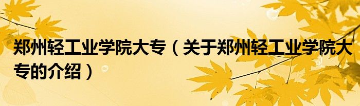 大家好,今天小乐来为大家解答以上的问题。郑州轻工业学院大专,关于郑州轻工业学院大专的介绍很多人还不知道,现在让我们一起来看看吧!