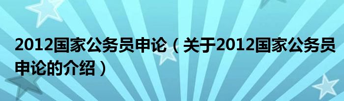 2012国家公务员申论(关于2012国家公务员申论的介绍)