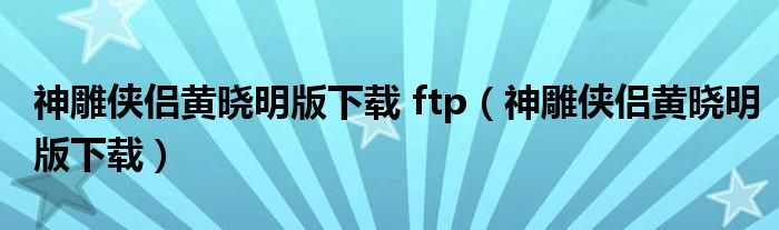 关于神雕侠侣黄晓明版下载 ftp,神雕侠侣黄晓明版下载这个很多人还不知道,今天菲菲来为大家解答以上的问题,现在让我们一起来看看吧!