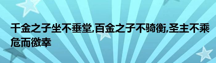 1、千金之子坐不垂堂”,语见《史记·袁盎传》。