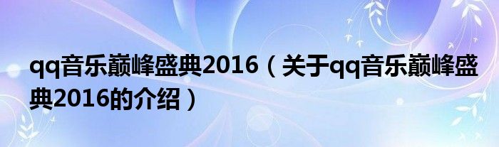1、2016QQ音乐巅峰盛典又称第三届QQ音乐年度/巅峰盛典/巅峰榜,是由QQ音乐主办的数据类音乐奖项。