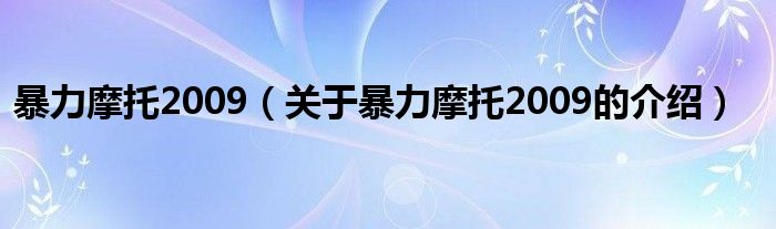 暴力摩托2009(关于暴力摩托2009的介绍)