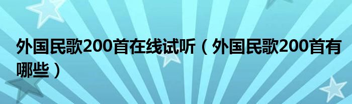 关于外国民歌200首在线试听,外国民歌200首有哪些这个很多人还不知道,今天菲菲来为大家解答以上的问题,现在让我们一起来看看吧!