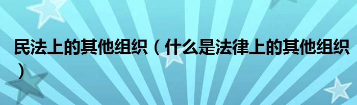 关于民法上的其他组织,什么是法律上的其他组织这个很多人还不知道,今天菲菲来为大家解答以上的问题,现在让我们一起来看看吧!