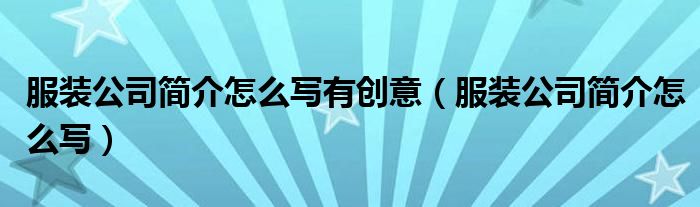 关于服装公司简介怎么写有创意,服装公司简介怎么写这个很多人还不知道,今天菲菲来为大家解答以上的问题,现在让我们一起来看看吧!