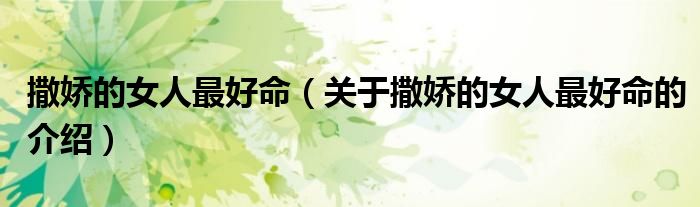 大家好,小都来为大家解答以上的问题。撒娇的女人最好命,关于撒娇的女人最好命的介绍很多人还不知道,现在让我们一起来看看吧!