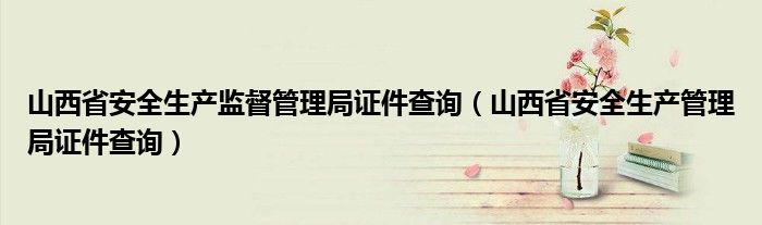 山西省安全生产监督管理局证件查询(山西省安全生产管理局证件查询)