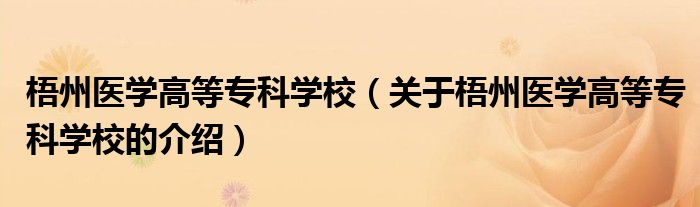 大家好,小都来为大家解答以上的问题。梧州医学高等专科学校,关于梧州医学高等专科学校的介绍很多人还不知道,现在让我们一起来看看吧!