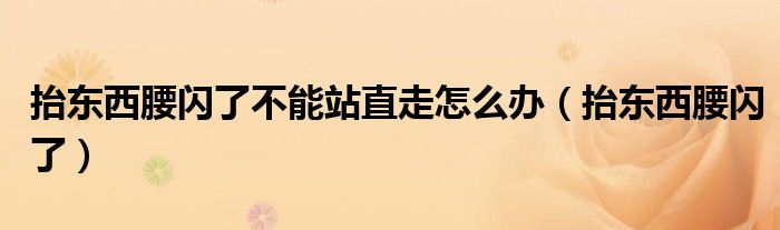 关于抬东西腰闪了不能站直走怎么办,抬东西腰闪了这个很多人还不知道,今天菲菲来为大家解答以上的问题,现在让我们一起来看看吧!