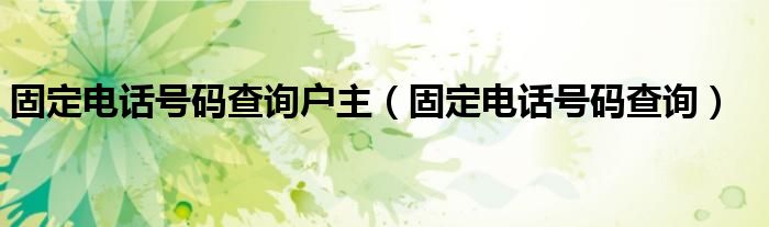 固定电话号码查询户主,固定电话号码查询很多人还不知道,乐乐来为大家解答以上问题,现在让我们一起来看看吧!