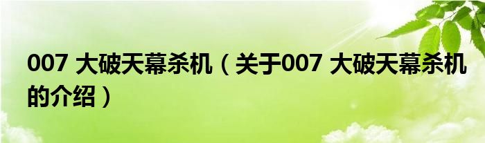 大家好,小都来为大家解答以上的问题。007 大破天幕杀机,关于007 大破天幕杀机的介绍很多人还不知道,现在让我们一起来看看吧!