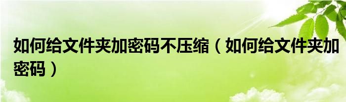 如何给文件夹加密码不压缩(如何给文件夹加密码)