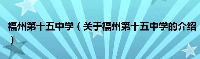 大家好,小都来为大家解答以上的问题。福州第十五中学,关于福州第十五中学的介绍很多人还不知道,现在让我们一起来看看吧!