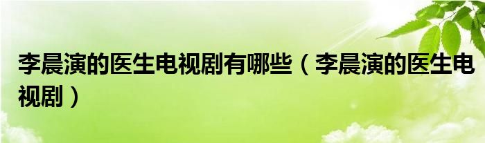 大家好,小晋来为大家解答以下问题,关于李晨演的医生电视剧有哪些,李晨演的医生电视剧很多人还不知道,今天让我们一起来看看吧!